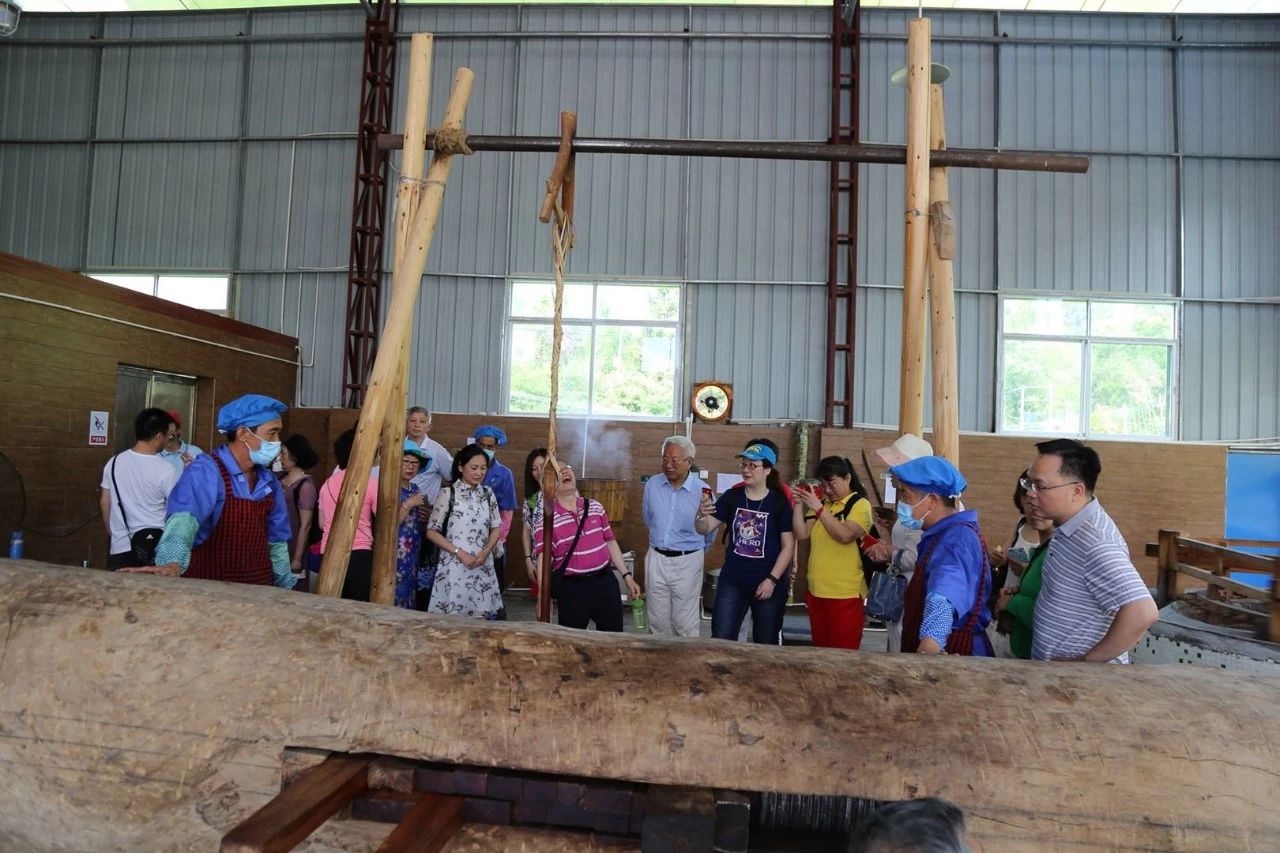 20日早上帶大家品嘗了本地特色客家豬肉湯飯,隨后前往綠油公司總部,在會議室觀看了綠油公司PPT介紹,品鑒了綠油老樹茶油后,參觀了傳承了一千多年的古老工藝—古法壓榨山茶油,重達200多斤的撞錘,敲打木楔子,對榨膛中的坯餅施加壓力。依靠這種物理壓榨,迫使油脂滲出,反復榨打,全程持續(xù)2個多小時,堅持只榨取山茶籽第一道油,在追求利益和效率的今天,這也許是對祖先智慧的傳承。