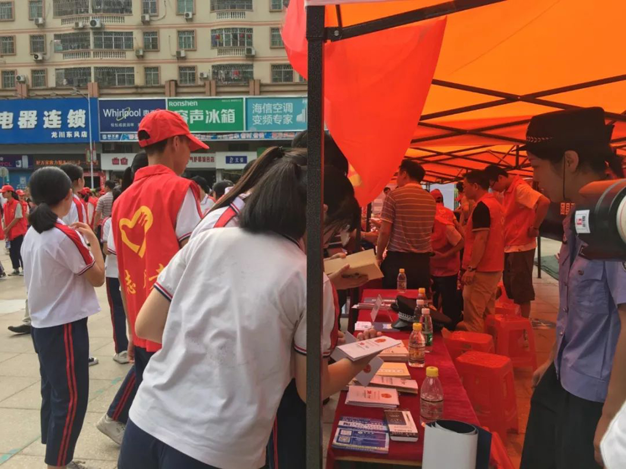 ▲曾樂暉常委為龍川縣網(wǎng)絡(luò)文明志愿服務(wù)隊授旗