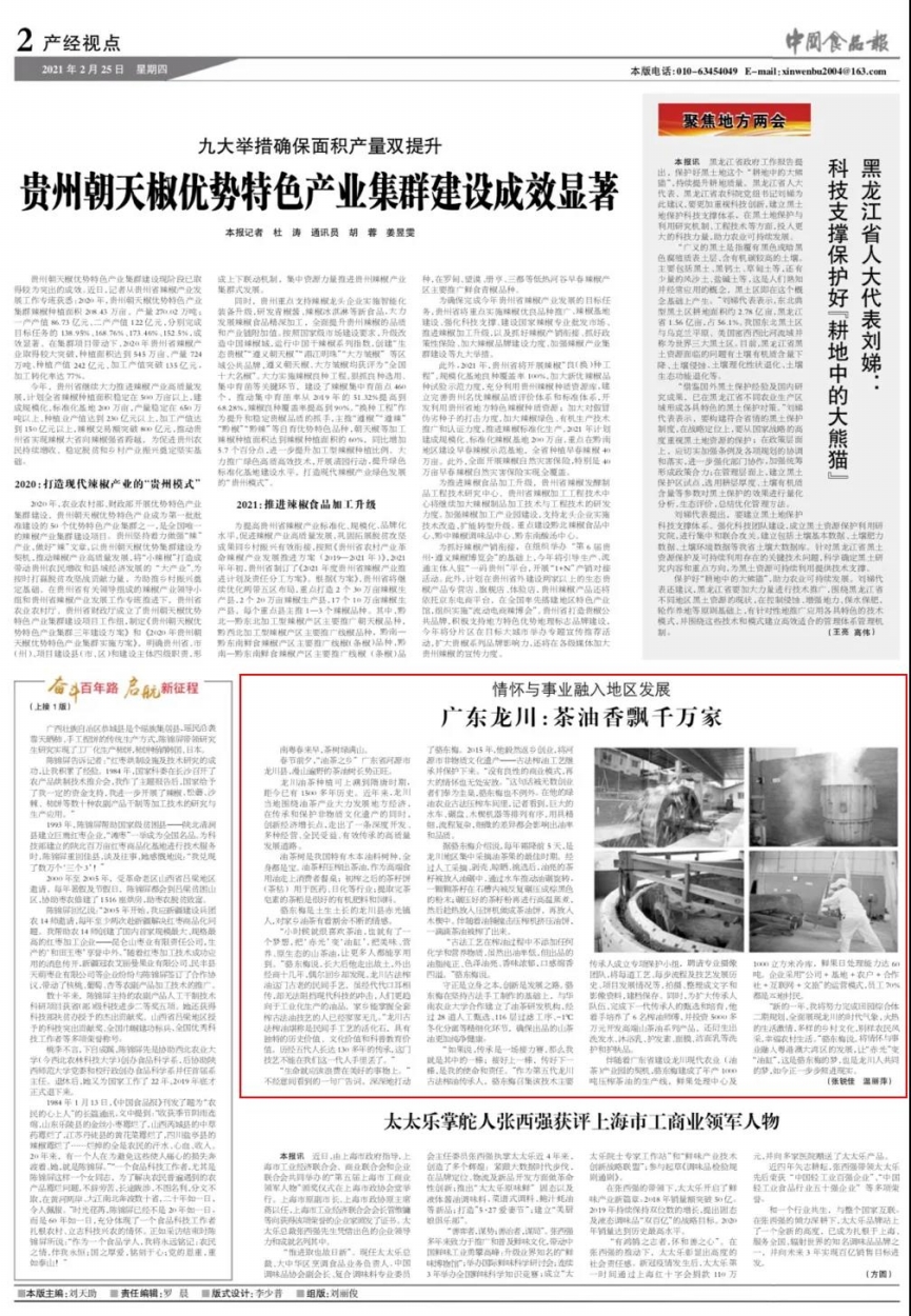 綠油農(nóng)業(yè)董事長駱東梅返鄉(xiāng)創(chuàng)業(yè),將情懷與事業(yè)融入地區(qū)發(fā)展,讓茶油香飄千萬家!2021年2月25日在《中國食品報》大版面撰文報道,并在“人民日報APP”刊出。