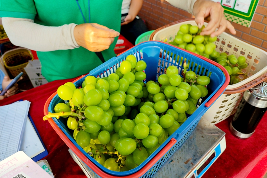 葡萄園里不僅有陽(yáng)光玫瑰,還有市面上備受好評(píng)的巨峰葡萄,輕咬一下就爆汁,讓你有初戀般的甜蜜,甜而不膩!