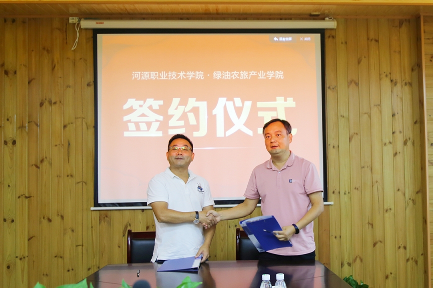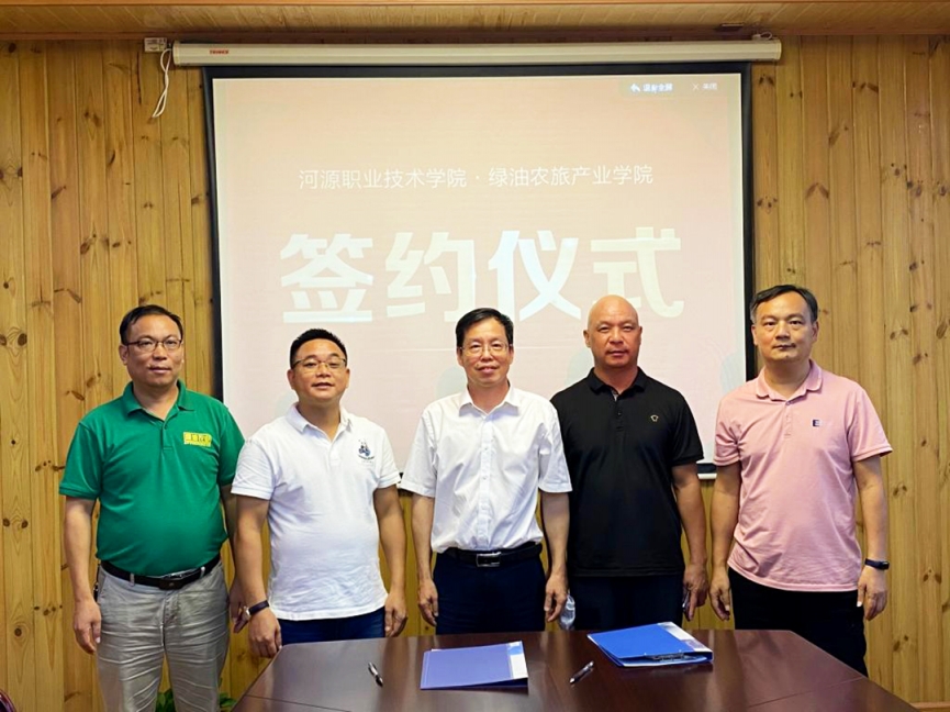 韋榮書記一行在綠油董事長駱東梅陪同下參觀走訪了綠油花果樹小鎮(zhèn),并在綠油農(nóng)業(yè)公司總部詳細(xì)了解了綠油公司自2015年成立至今的發(fā)展情況及未來發(fā)展計劃。河源職業(yè)技術(shù)學(xué)院自2016年開始與綠油公司開始校企合作,陸續(xù)開展了產(chǎn)學(xué)研項目合作。為后續(xù)更好推進(jìn)協(xié)同育人,協(xié)同創(chuàng)新工作,校企雙方簽訂了“河職院-龍川綠油產(chǎn)業(yè)學(xué)院框架協(xié)議”。