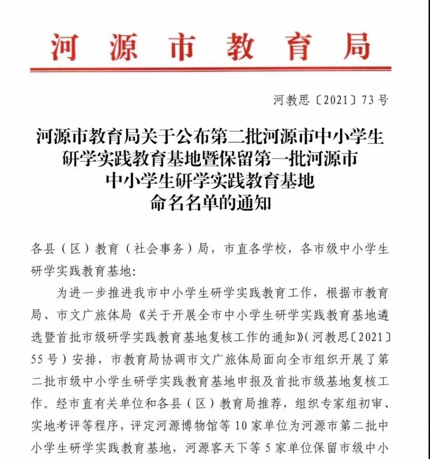 第二批河源市中小學(xué)生研學(xué)實(shí)踐教育基地名單