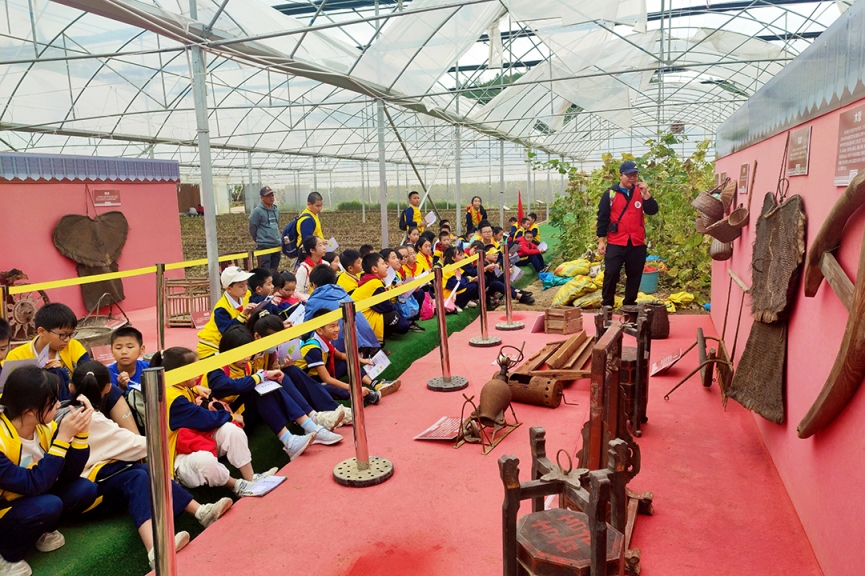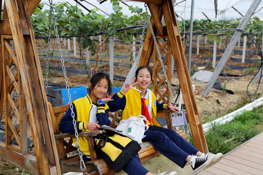 10月22日,綠油農(nóng)業(yè)迎來了河源市第三小學(xué)六年級(jí)400多名師生研學(xué)實(shí)踐教育活動(dòng)。教育需要實(shí)踐,成長需要體驗(yàn)。讓學(xué)生們增長見識(shí),開闊視野,體驗(yàn)“行走教育的力量”! 了解民俗文化 同學(xué)們來到綠油花果樹小鎮(zhèn)景區(qū),在客家文化展示區(qū)參觀學(xué)習(xí)了客家民俗文化,了解客家傳統(tǒng)勞作工具:竹漏勺、織布機(jī)、棕衣、木犁、竹籃、魚簍、耙......,這些從未見過的工具讓學(xué)生們大開眼界。 品嘗果園趣味 來到精品葡萄園,學(xué)生們認(rèn)識(shí)了品種繁多的葡萄:巨峰葡萄、夏黑葡萄、陽光玫瑰葡萄、甜蜜藍(lán)寶石葡萄……看到這么多誘人的葡萄,有的學(xué)生拿著筆記本記錄自己的所見所聞;有的學(xué)生還親自采摘,感受采摘的無限樂趣,品味葡萄的誘人滋味。 采摘茶果比賽 “摘茶果”比賽開鑼了!學(xué)生們在茶園里尋找著茶果,不一會(huì)兒,一袋袋“戰(zhàn)利品”,一雙雙探知的眼眸,一張張歡樂的笑臉定格在這茶園之中……