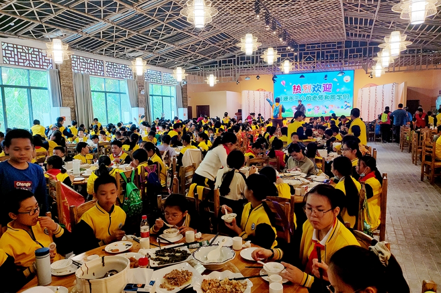 體驗(yàn)收成樂趣 “茶油仔,圓溜溜,剝起殼來真不易……”,在綠油總部,同學(xué)們體驗(yàn)著茶油仔剝殼過程的艱辛,感受著收獲的樂趣! 感受非遺技藝 同學(xué)們在綠油“非物質(zhì)文化遺產(chǎn)——綠油古法壓榨車間”,聆聽綠油小鎮(zhèn)研學(xué)導(dǎo)師的講解,了解了非遺油茶古法榨油技藝及現(xiàn)代化榨油技術(shù),并親自體驗(yàn)了“敲”、“推”、“磨”等古法榨油工藝。 山莊共進(jìn)午餐 臨近中午,同學(xué)們齊聚綠油初心山莊共進(jìn)午餐,品嘗當(dāng)?shù)鼐G色有機(jī)蔬菜,補(bǔ)充體能消耗。 師生合影留念 各班師生合影留念,把研學(xué)的快樂與成長的足跡留在相片里,成為美好的記憶。 此次研學(xué)實(shí)踐,讓學(xué)生走出教室,走進(jìn)社會(huì),在“游”中“學(xué)”,在“學(xué)”中“悟”,開闊了視野,拓寬了知識(shí)面,進(jìn)一步了解非遺油茶文化,傳承家鄉(xiāng)文明。 綠油花果樹小鎮(zhèn) 綠油花果樹小鎮(zhèn)是由龍川綠油農(nóng)業(yè)發(fā)展有限公司投資興建的國家AAA級(jí)旅游景區(qū),2021年榮獲河源市第二批中小學(xué)生研學(xué)實(shí)踐教育基地,為學(xué)生們提供良好的校外教育活動(dòng)場所。 園區(qū)包含戀戀花海、茶花品種園、精品葡萄園、開心樂園、越野山地車、CS實(shí)戰(zhàn)區(qū)、初心山莊、民宿、非物質(zhì)文化遺產(chǎn) “古法壓榨山茶油”、抗美援朝愛國教育基地等景點(diǎn),是集觀光旅游、休閑采摘、餐飲住宿、度假游樂為一體的精品鄉(xiāng)村休閑生態(tài)農(nóng)旅景區(qū)。 研學(xué)火熱招生中 聯(lián)系人:鄺經(jīng)理 聯(lián)系電話:18923689845 研學(xué)地點(diǎn):河源市龍川縣綠油花果樹小鎮(zhèn)景區(qū) 國家AAA級(jí)旅游景區(qū) 綠油花果樹小鎮(zhèn)歡迎您!