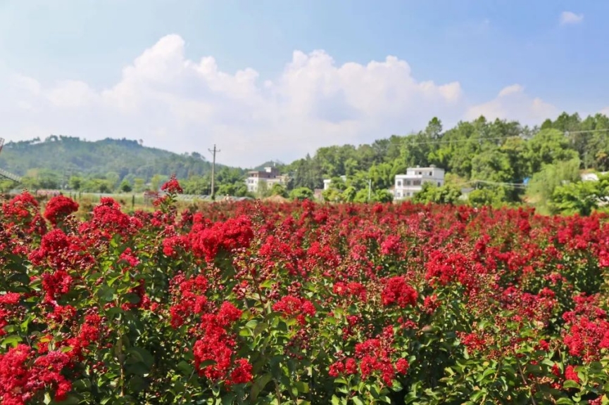 綠油小鎮(zhèn)的紫薇花海正在絢爛綻放中