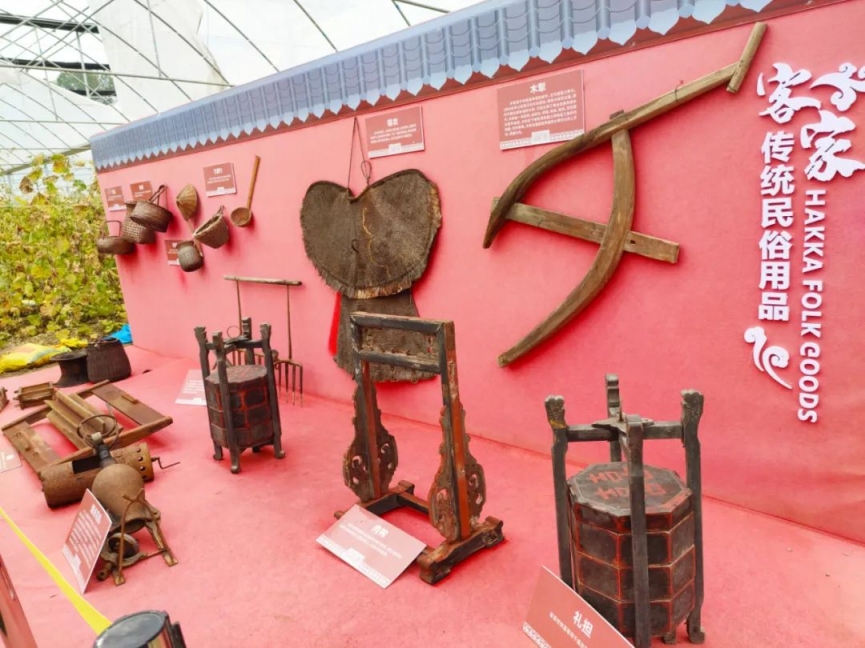 踏入大棚水果園,我們來(lái)到客家風(fēng)俗農(nóng)耕工具展廳,這個(gè)是木犁,這個(gè)是礱,這個(gè)是米篩......大家一起認(rèn)識(shí)客家農(nóng)俗工具,感受先人的智慧。