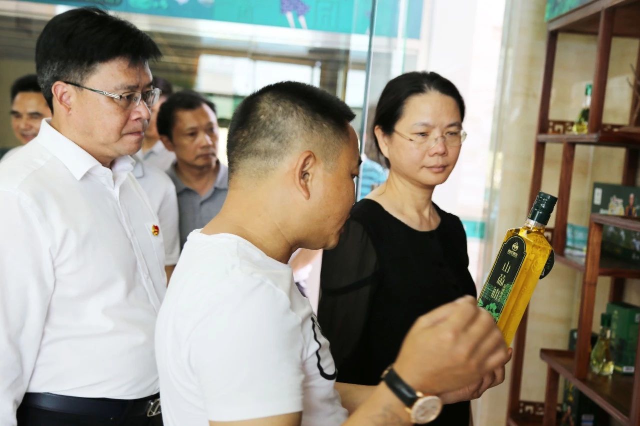 葉市長(zhǎng)在參觀過(guò)程中認(rèn)真聽(tīng)取介紹并提出了自己獨(dú)到的見(jiàn)解: “鄉(xiāng)村振興發(fā)展,農(nóng)業(yè)產(chǎn)業(yè)是關(guān)鍵。龍川縣要立足本地實(shí)際,結(jié)合獨(dú)特的自然稟賦,大力發(fā)展茶油等特色農(nóng)業(yè)產(chǎn)業(yè),用工業(yè)化機(jī)制發(fā)展農(nóng)業(yè)產(chǎn)業(yè),盡快建立茶油產(chǎn)業(yè)的標(biāo)準(zhǔn)化,不斷擴(kuò)大規(guī)模、打響品牌、贏得市場(chǎng),以全產(chǎn)業(yè)鏈模式推動(dòng)現(xiàn)代農(nóng)業(yè)產(chǎn)業(yè)實(shí)現(xiàn)加快發(fā)展,以農(nóng)業(yè)產(chǎn)業(yè)興旺促進(jìn)鄉(xiāng)村振興發(fā)展”。葉市長(zhǎng)給茶油的發(fā)展指明了方向, 并讓綠油農(nóng)業(yè)承擔(dān)更多的社會(huì)責(zé)任,為“山茶油成為龍川的地理標(biāo)識(shí)”做出應(yīng)有的努力和貢獻(xiàn)。