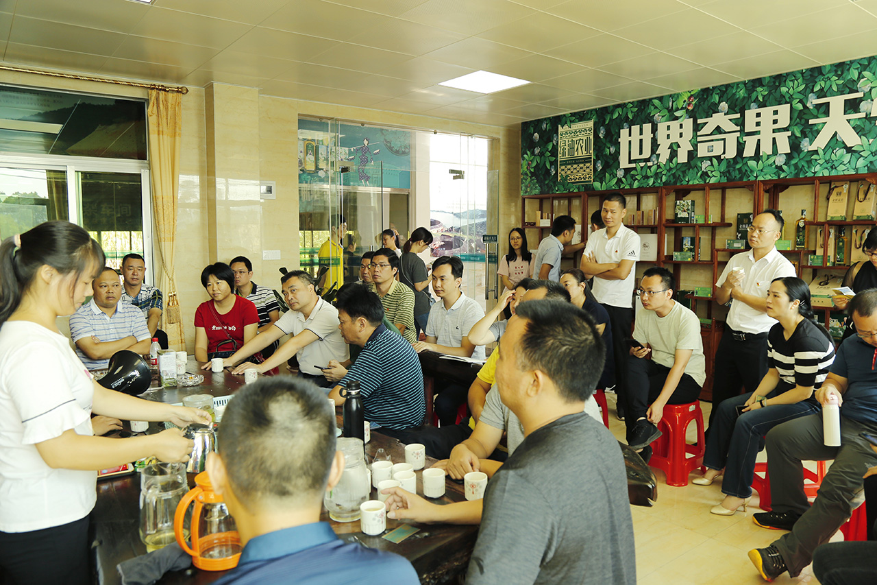 隨后來到綠油產(chǎn)品展廳,綠油董事長駱東梅向市委黨校中青班學員一行介紹綠油發(fā)展狀況以及未來的目標和方向。綠油以“公司+基地+農(nóng)戶+合作社+互聯(lián)網(wǎng)+文旅”的經(jīng)營模式,與當?shù)?60多戶老茶農(nóng)和261戶精準扶貧戶簽訂合作協(xié)議,免費為部分農(nóng)戶提供茶苗、有機肥料、農(nóng)資及技術(shù)等全方位培訓和支持,做到帶動更多貧困戶及農(nóng)戶增產(chǎn)增收、脫貧致富。