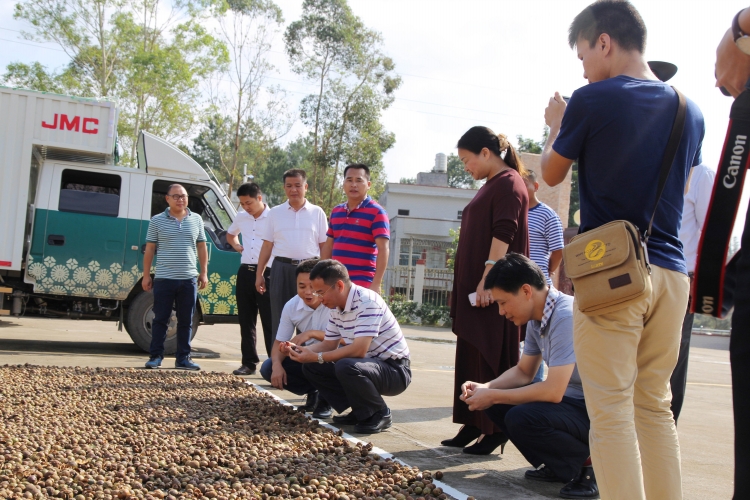 (領(lǐng)導(dǎo)一行視察曬茶果現(xiàn)場)